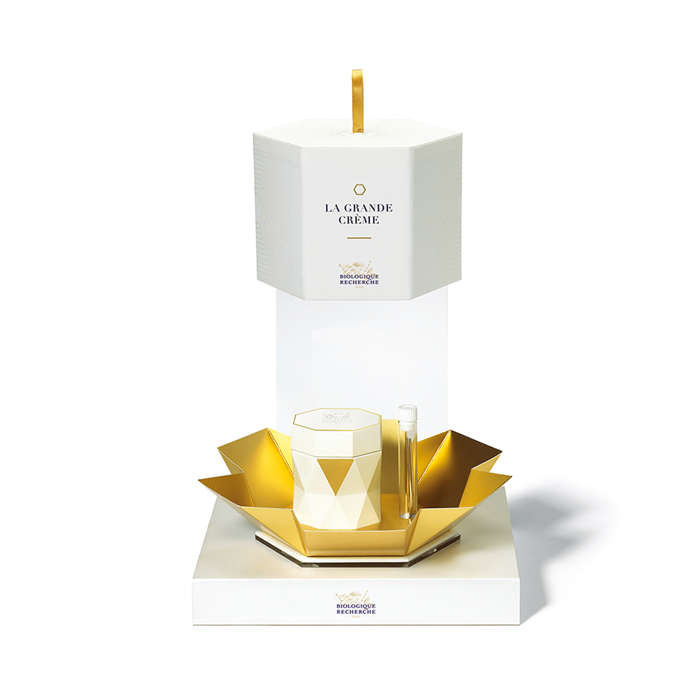 La Grande Crème – kem dưỡng với chiết xuất hoa cúc vạn thọ, EGF cần thiết cho quá trình tái tạo mô và protein cùng chiết xuất mẫu đơn giúp định hình đường nét khuôn mặt. Cuối cùng, ma trận mantrikine gồm những peptide nhỏ, angline peptide và canxiline sẽ giúp chống oxy hóa, sửa chữa ADN.